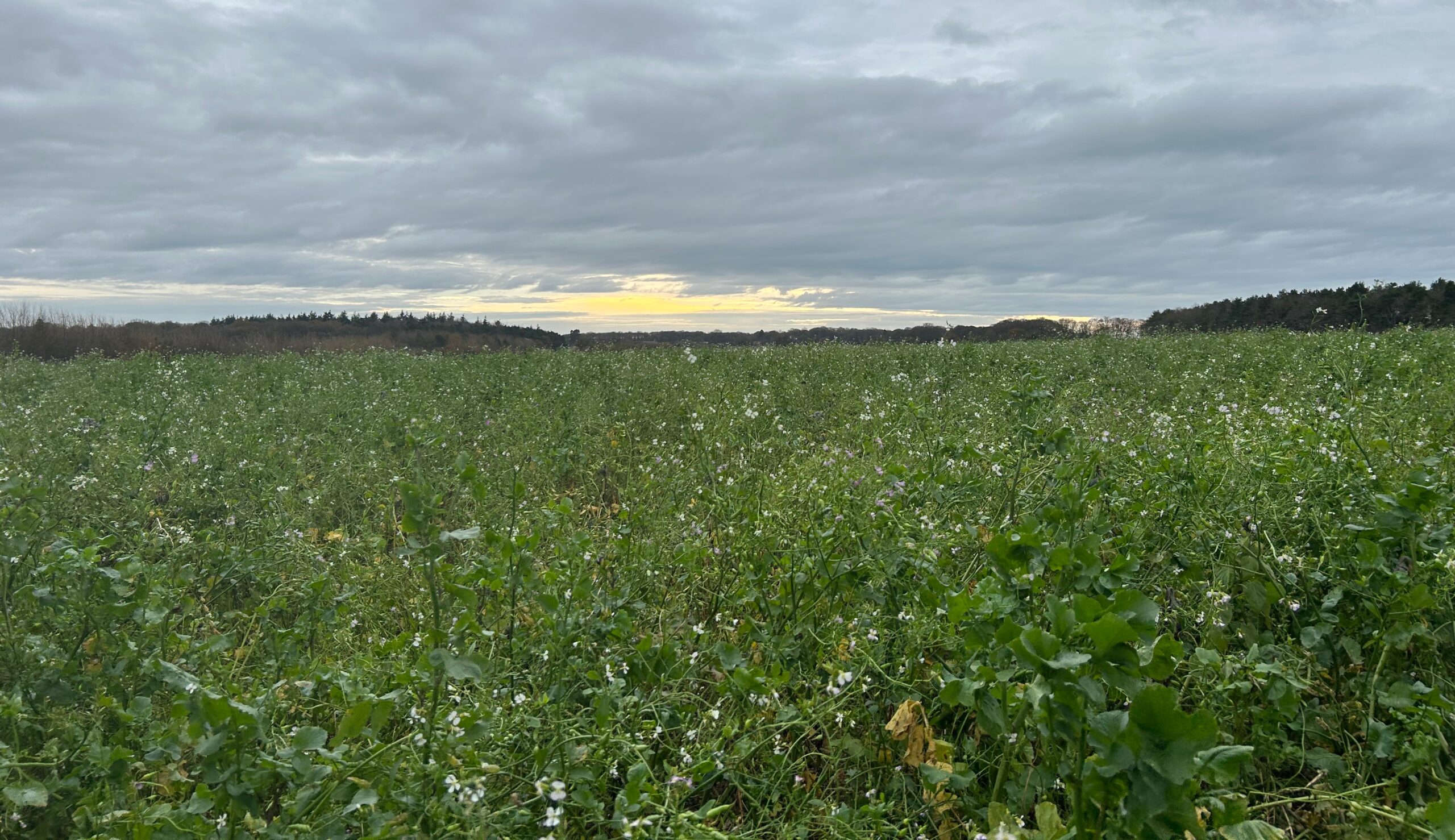 Cover crops can include grasses, legumes, brassicas and flowering species, often sown as diverse mixes. Each species plays a different role, from fixing nitrogen and improving soil structure, to suppressing weeds and supporting beneficial insects.