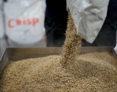 Crisp Malt smoked peated malt used for distilling, close up of grains.
